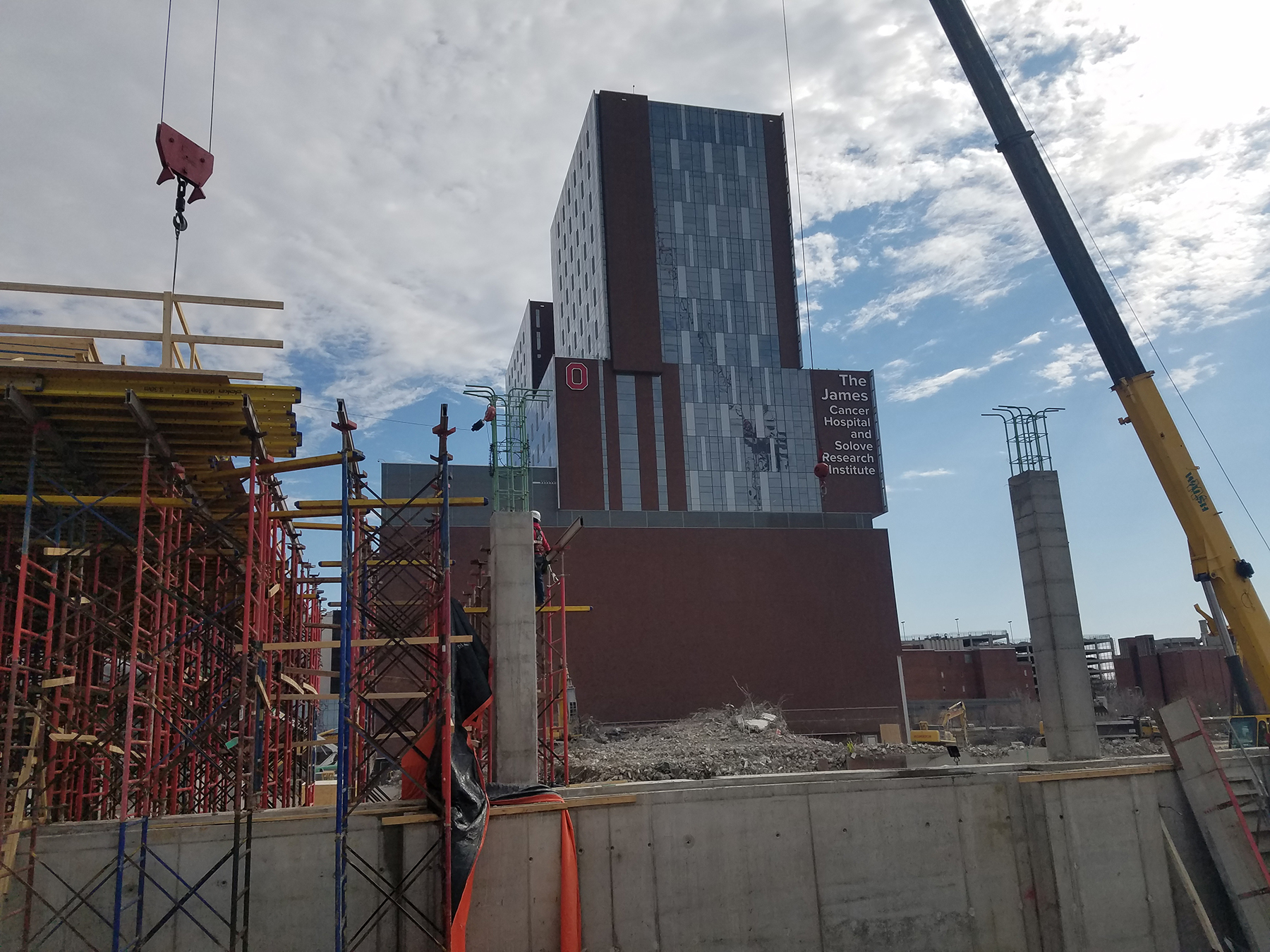 - In the coming weeks, basement excavation and foundation work will move east toward the James Cancer Hospital, backfilling the site where the Cannon Garages once stood. By the end of March, the new Inpatient Hospital concrete elevator cores will be progressing upward.