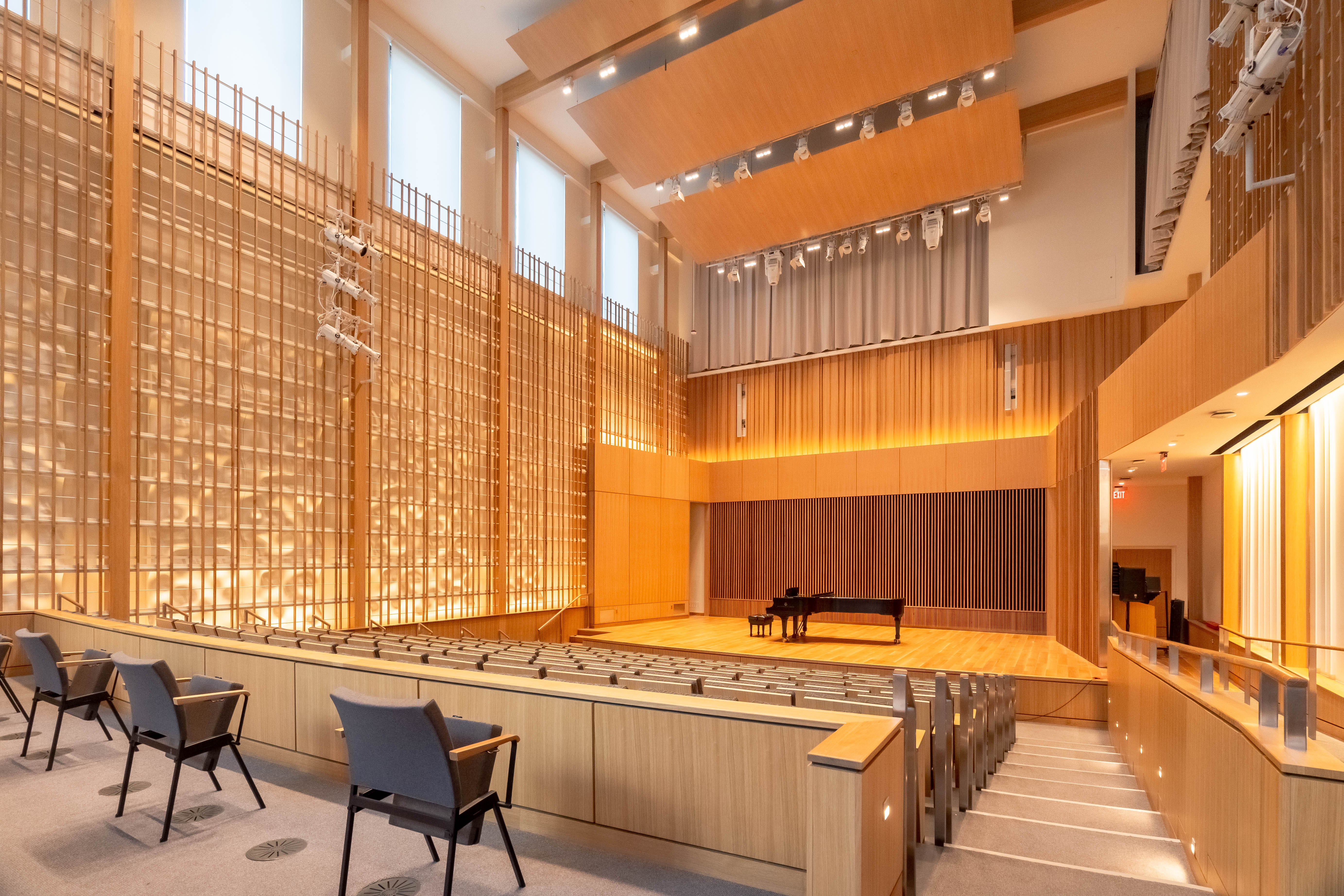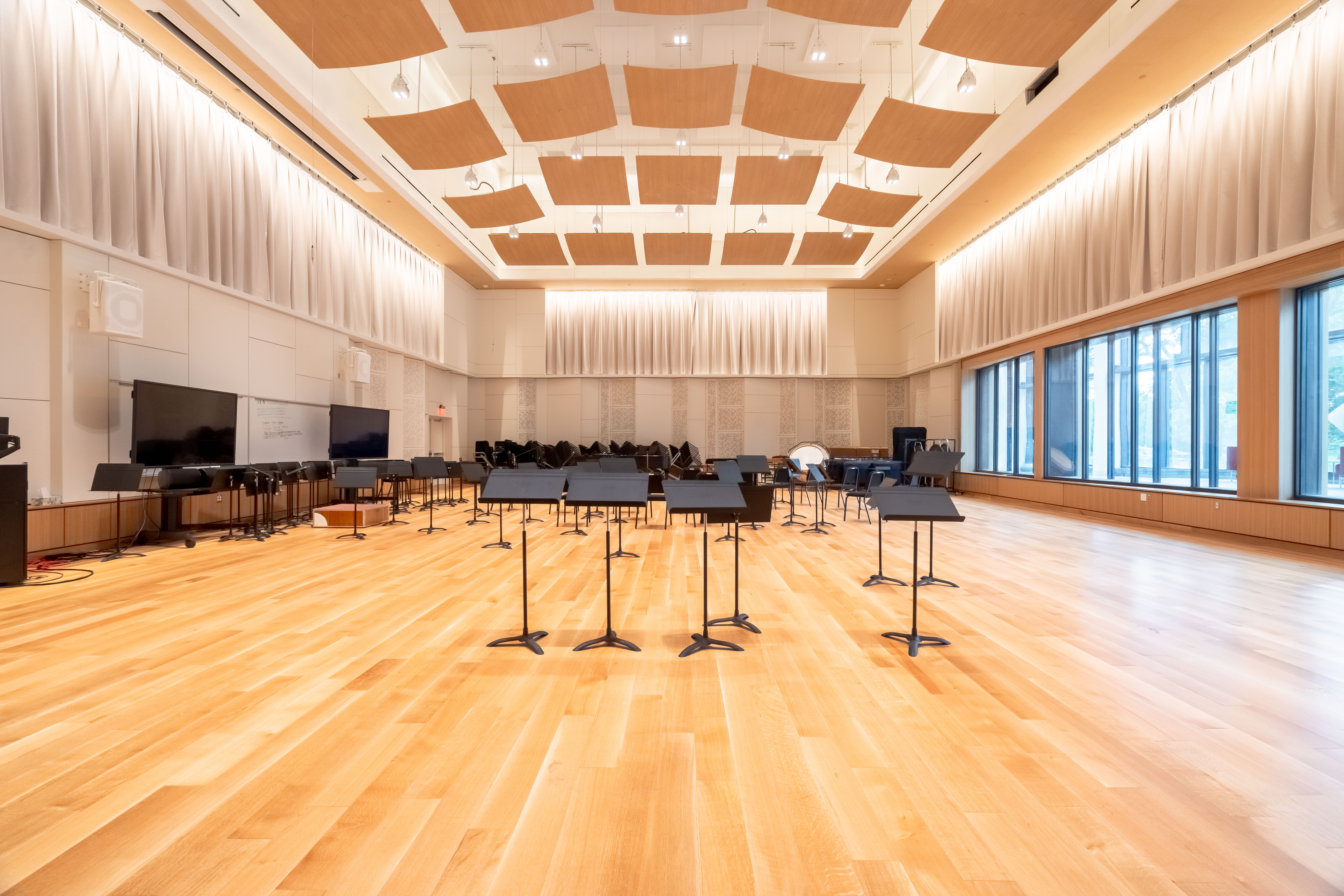 While progress continues on the Department of Theatre, Film, and Media Arts, the Timashev Family Music Building is in full use. In early September, new wayfinding signage was installed in the near elevator lobbies. View the slideshow to track progress and to see final images of the music building.