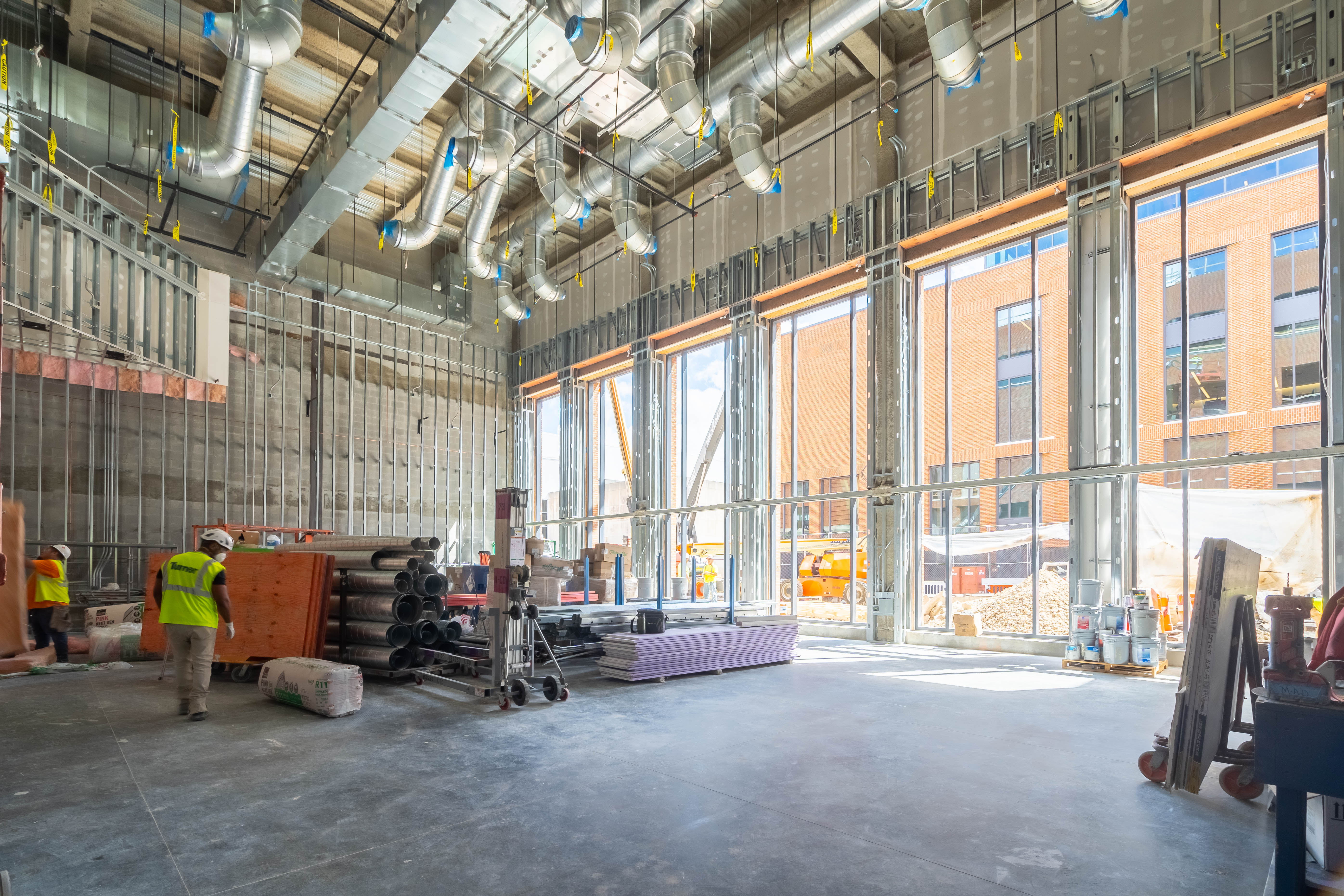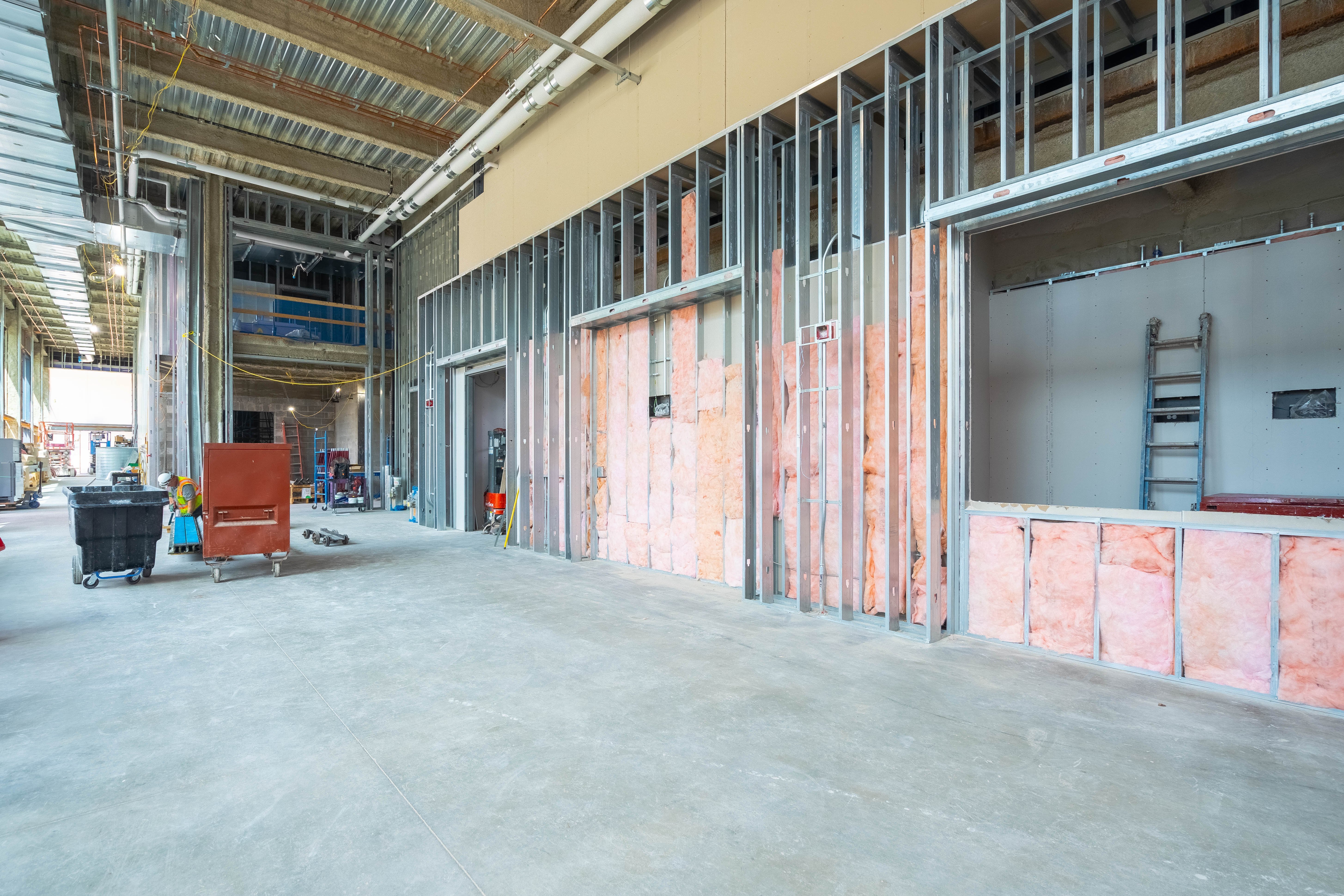 - Interior framing, ceiling framing, drywall and door frames are taking place throughout the building.