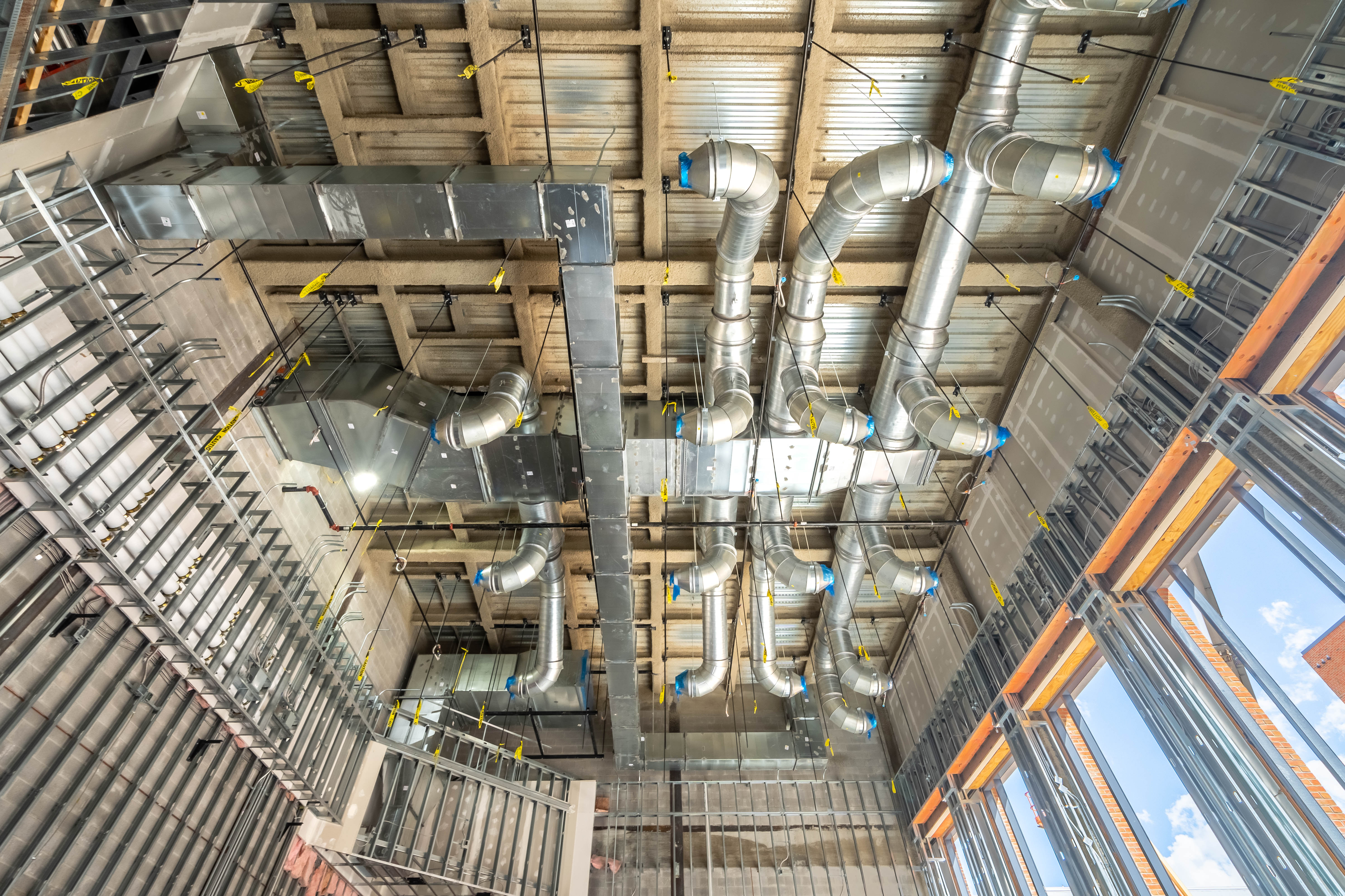 - Ductwork continues in the on the Mezzanine, Scene Shop and Thrust Theatre.